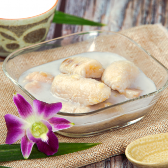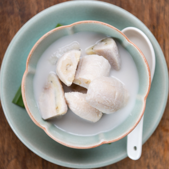 กล้วยเนื้อห่ามเคี่ยวในน้ำกะทิรสหวานมัน ตักไปตรงไหนก็เจอกล้วยเต็มคำ หอมกำลังดี หวานกำลังโดน
